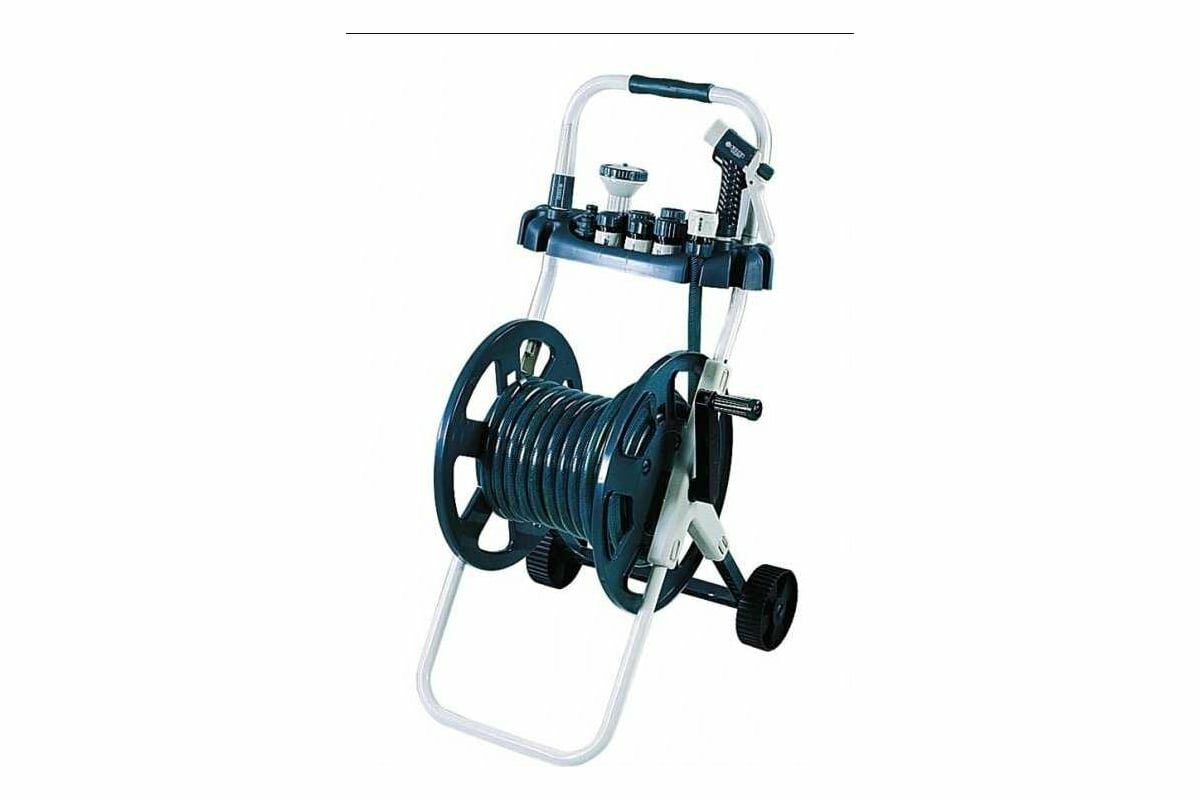 | Плюсы: | Собирается легко. Конструкция легкая. Уместилось 50 м шланга диаметром 1/2" |