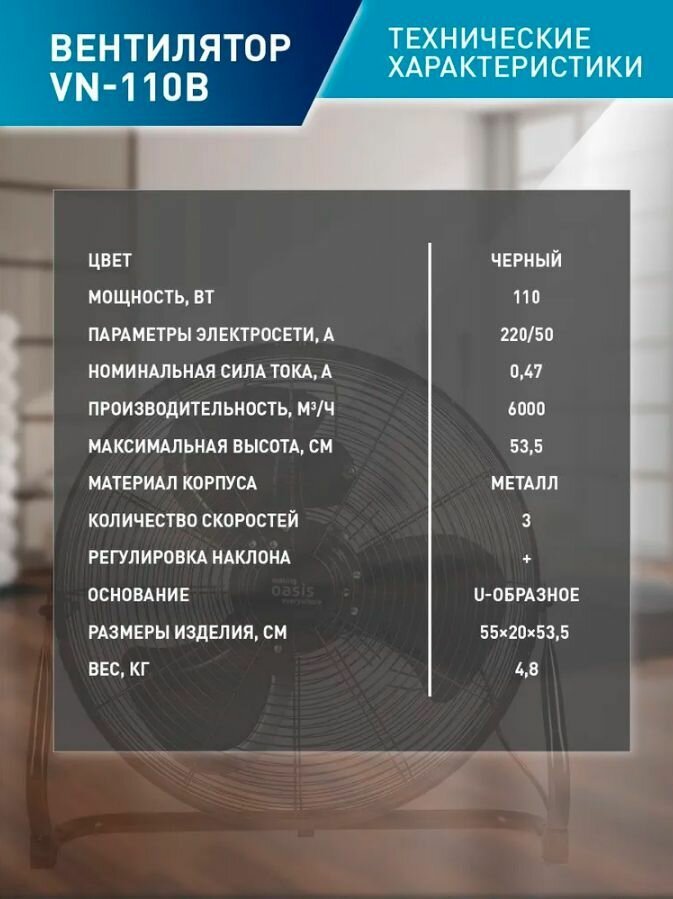 Вентилятор напольный Oasis VN-110 B интересное: