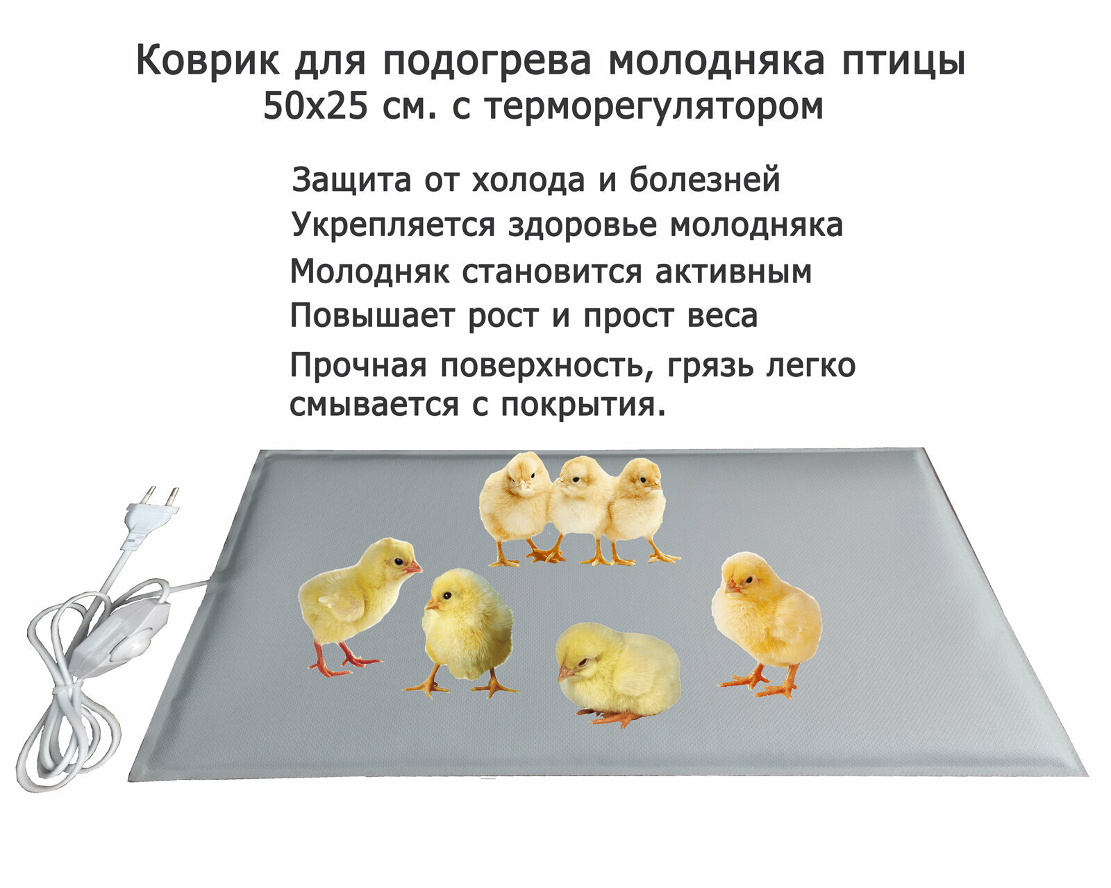 Электроподогреватель ТеплоМакс для молодняка птицы 50x25 см. с терморегулятором / Коврик с подогревом для цыплят 50x25 см. с терморегулятором / Обогреватель для цыплят