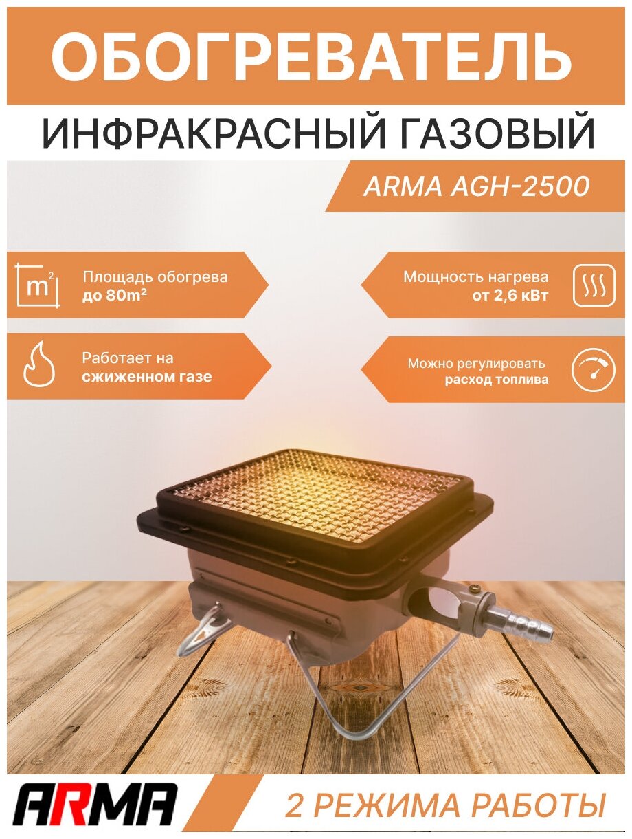 Обогреватель инфракрасный газовый ARMA AGH-2500, 2,5 кВт интересное:
