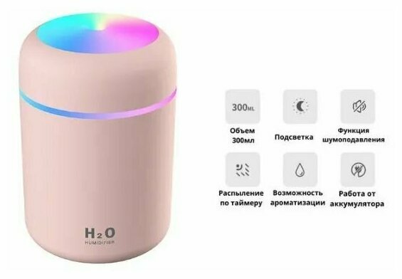 Мини-увлажнитель воздуха С подсветкой HUMIDIFIER H2O DQ Розовый