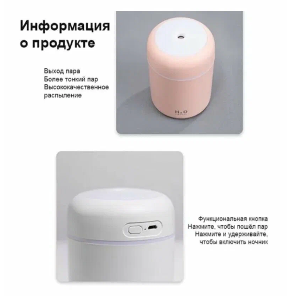 Мини-увлажнитель воздуха С подсветкой HUMIDIFIER H2 О
