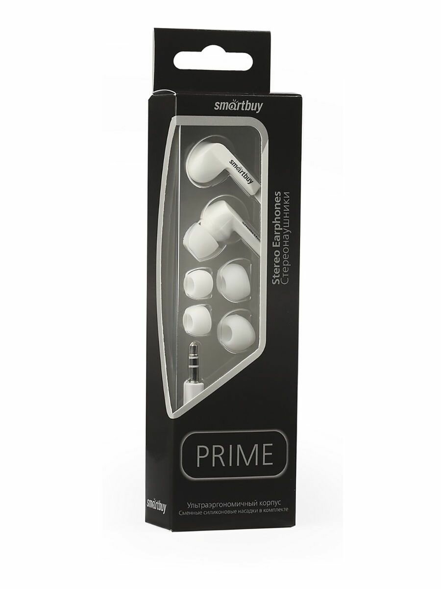 Купить Внутриканальные наушники Smartbuy PRIME, динамики 10мм, плоский кабель, белые, 3 пары вставок (SBE-120)/60