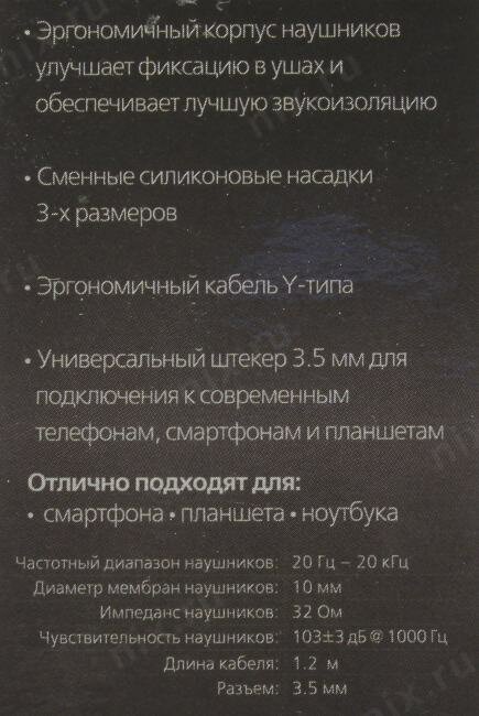 Наушники SmartBuy® PRIME, динамики 10мм, плоский каб, черн,3 пары вставок(SBE-110)