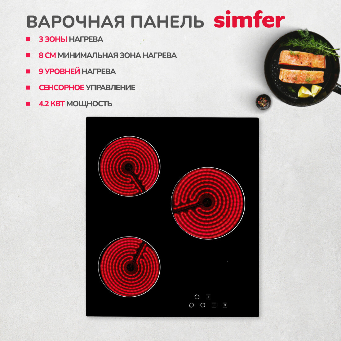 Ниже Вы можете прочитать отзывы на Электрическая варочная панель Simfer H45D13B000, сенсорное управление, индикаторы тепла, ознакомится с подробными характеристиками, посмотреть интересные обзоры и фотографии на Электрическая варочная панель Simfer H45D13B000, сенсорное управление, индикаторы тепла.