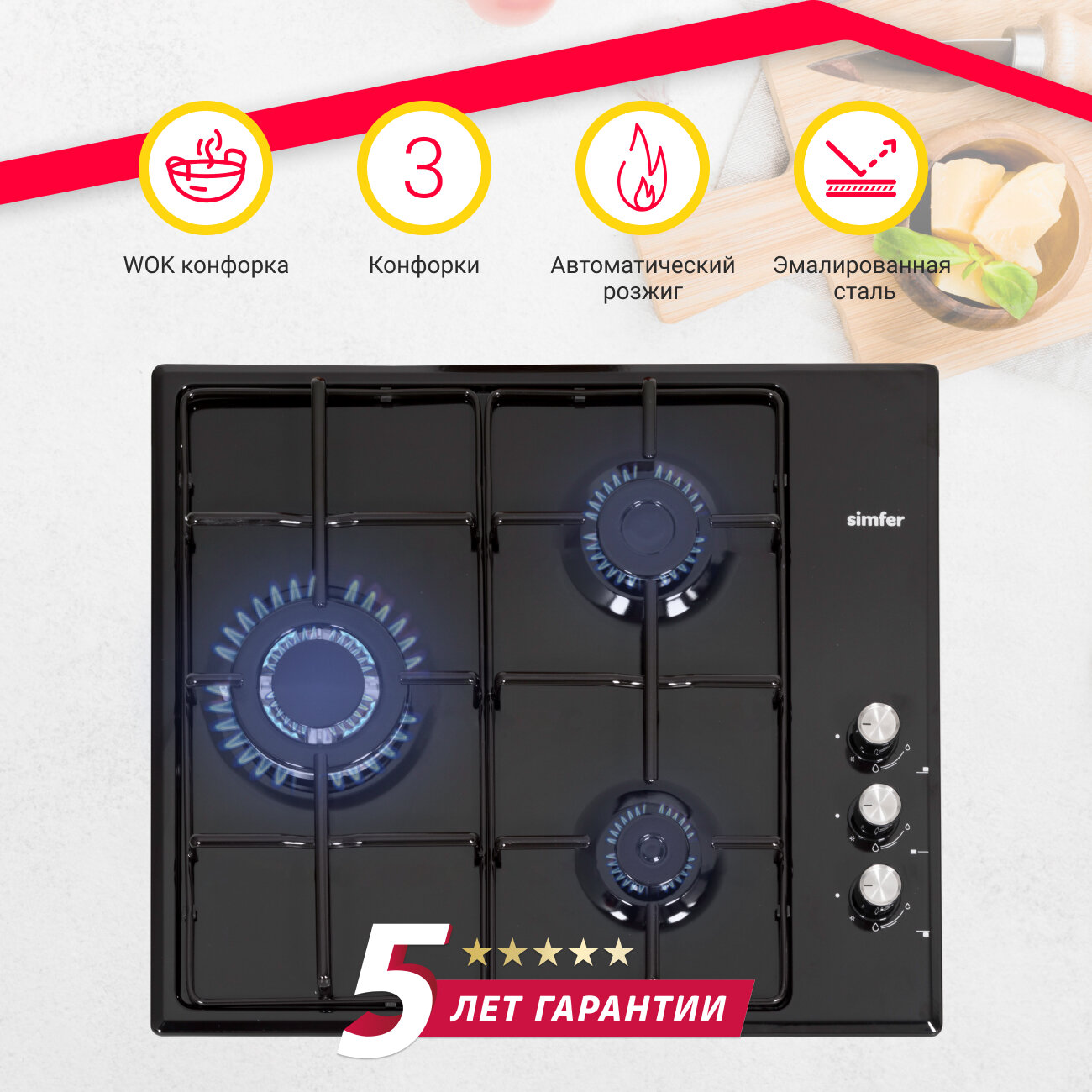 Газовая варочная панель Simfer H60Q35B022 интересное: