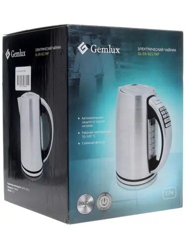 Чайник Gemlux GL-EK-9217WF, регулировка температуры, измерительная шкала, фильтр от накипи, отсек для шнура, 1.7 л, 22.9х22.9х30 см