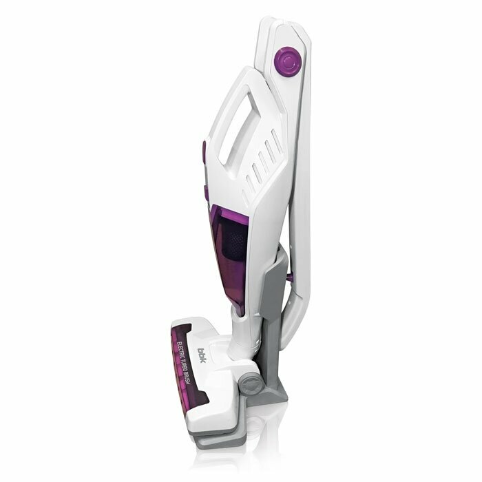Вертикальный беспроводной пылесос "2 в 1" BBK BV2526 белый/сиреневый, мощность всасывания 100 Вт, объем пылесборника 0,75 л, сухая уборка