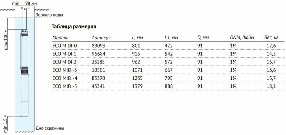 Ниже Вы можете прочитать отзывы на Насос скважинный UNIPUMP ECO MIDI 0 - 0,37 кВт (однофазный, Hmax 44 м, Qmax 50 л/мин, кабель 20 м), ознакомится с подробными характеристиками, посмотреть интересные обзоры и фотографии на Насос скважинный UNIPUMP ECO MIDI 0 - 0,37 кВт (однофазный, Hmax 44 м, Qmax 50 л/мин, кабель 20 м).