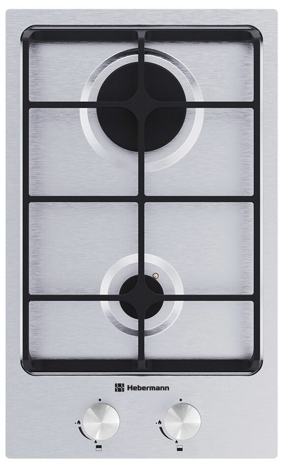 Газовая варочная панель Hebermann HBGS 302.1 X, ширина 31 см, нержавеющая сталь, 2 конфорки