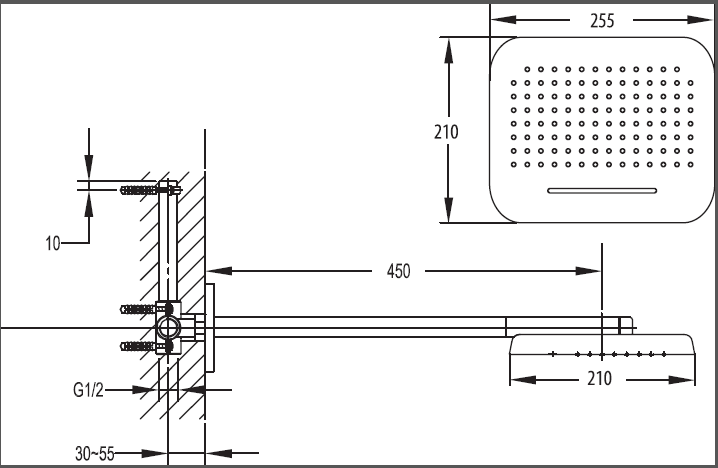 | Дополнительная информация | длина верхнего душа: 210 мм; ширина верхнего душа: 255 мм |