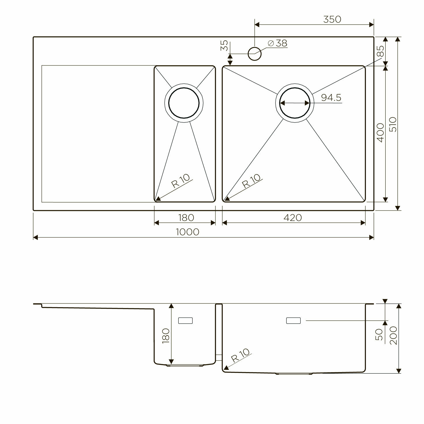 Кухонная мойка OMOIKIRI Akisame 100-2-IN-R 4973547 (1000 x 510 мм), врезная, нержавеющая сталь