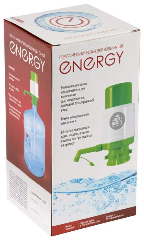 Помпа для воды ENERGY EN-005 для 19-ти литровых бутылок, белый/зеленый