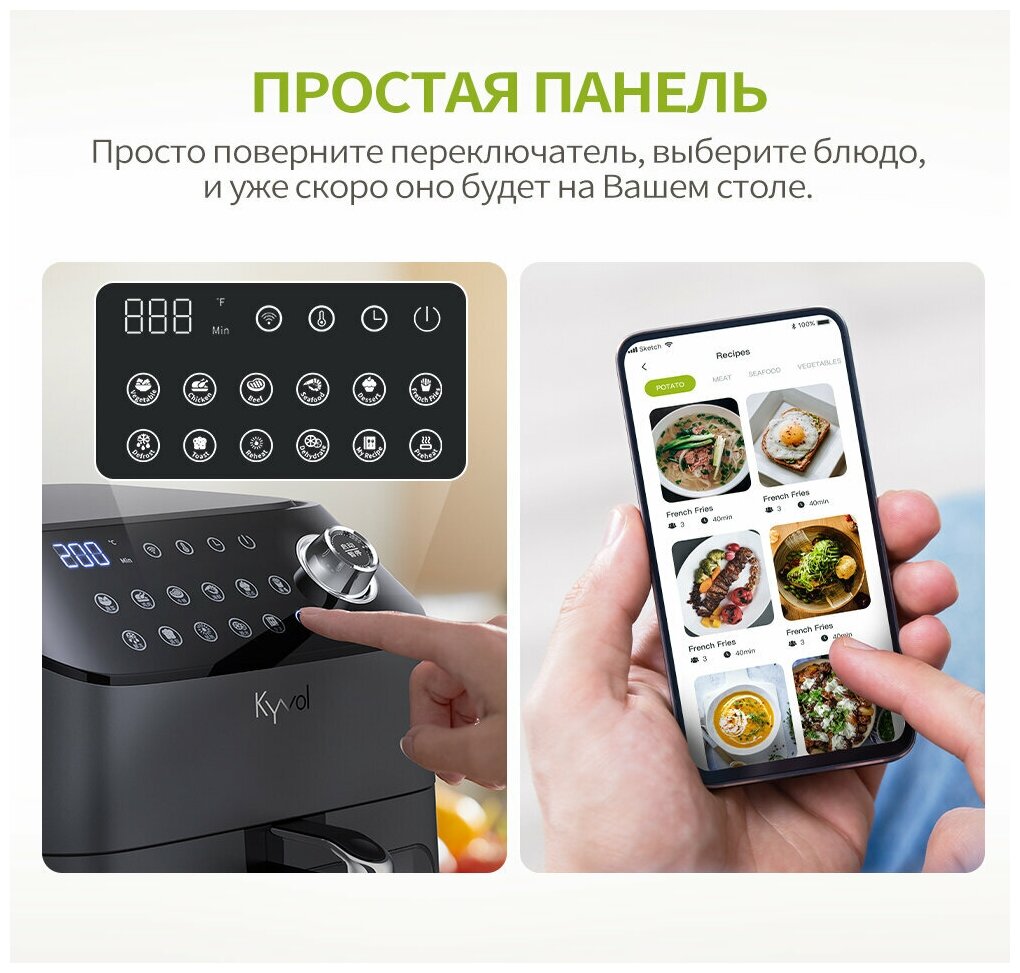 Аэрофритюрница Kyvol AF600, 1350 Вт., сенсорное, Wi-Fi, Рецепты 100+