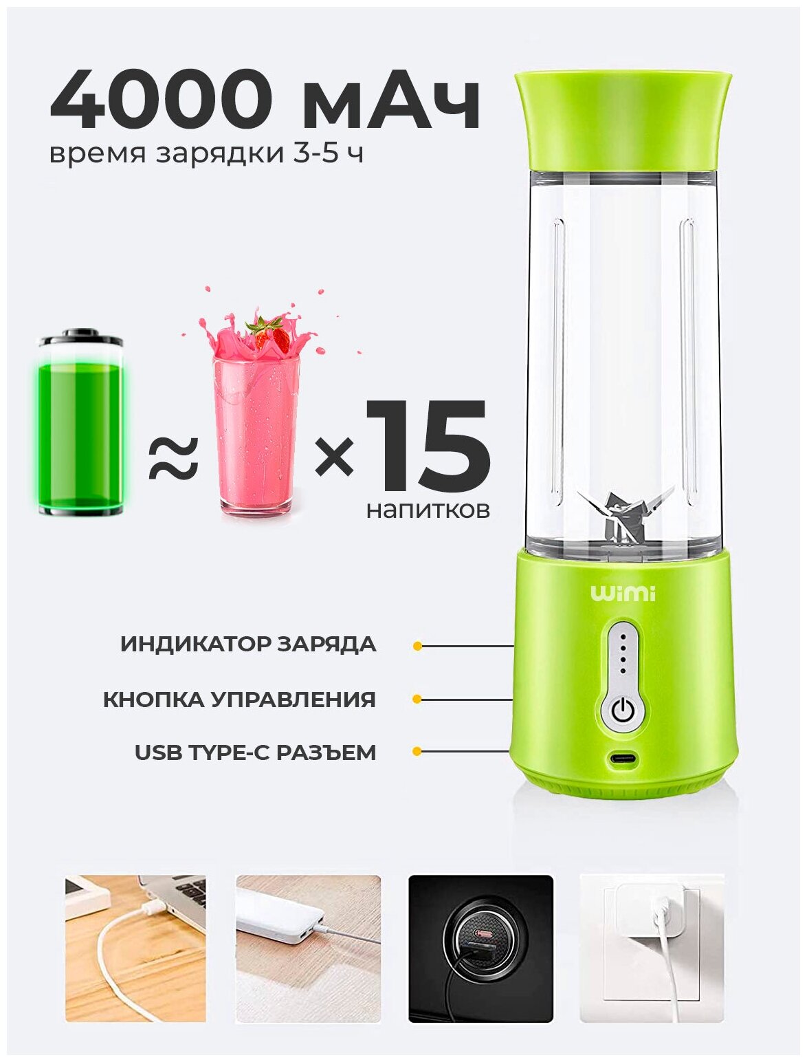 Портативный блендер WiMi A7 мини для смузи, коктейлей беспроводной, стакан, шейкер для соуса, измельчитель салатовый интересное: