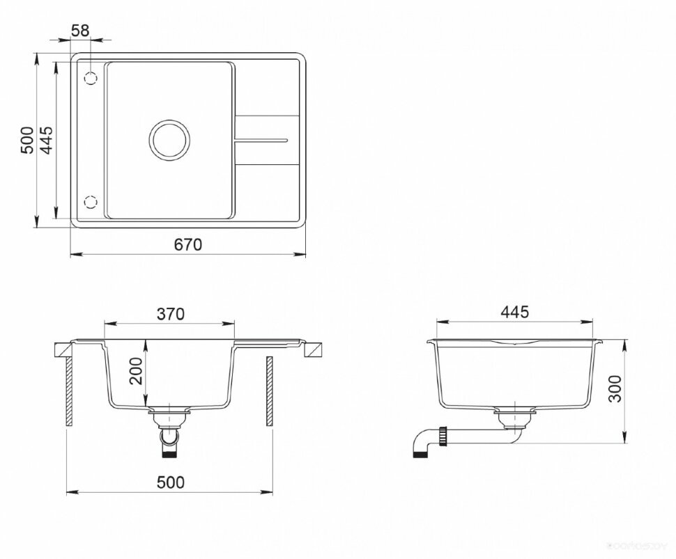 | Ширина мойки | 67 см |