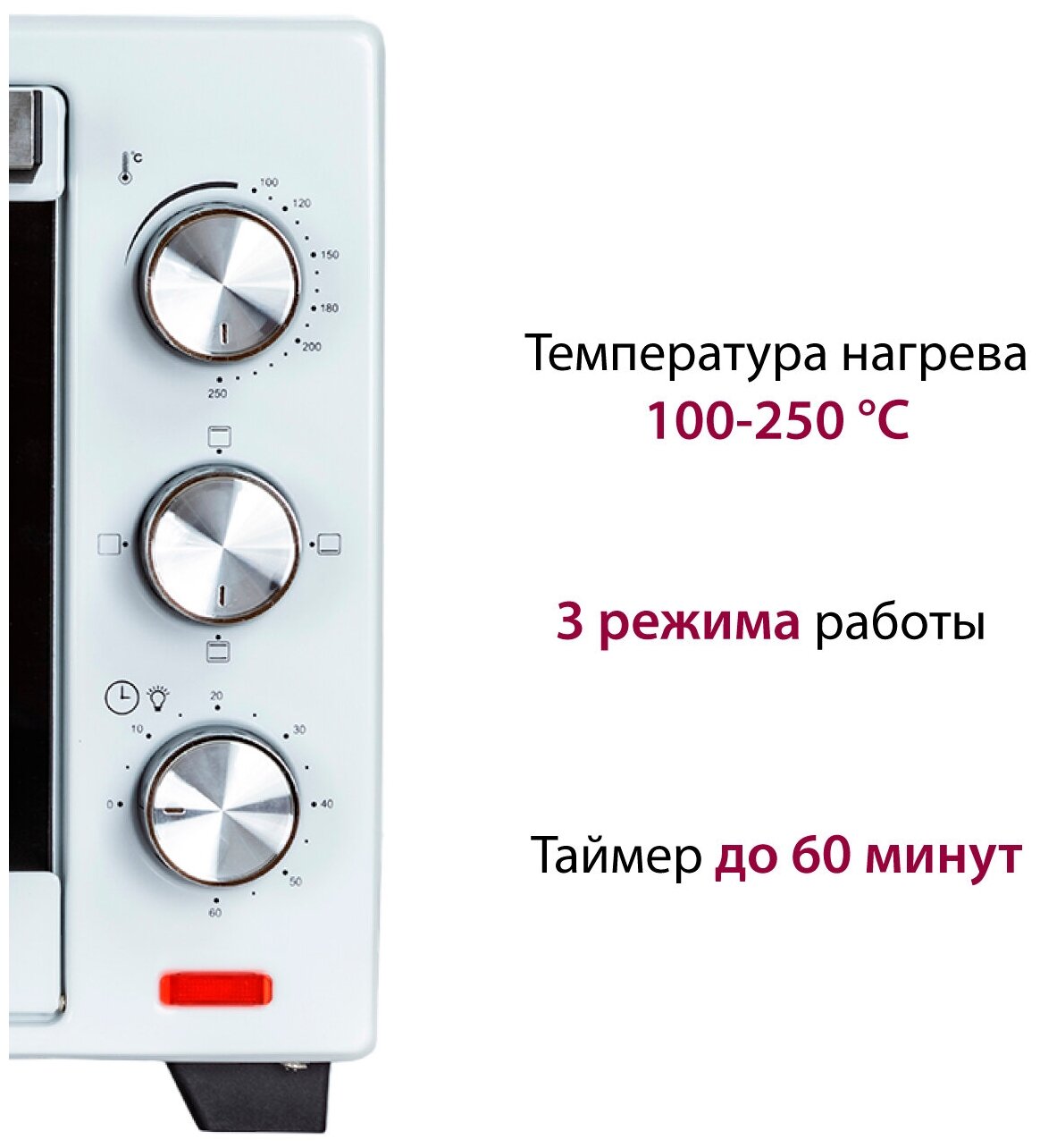 | Режимы | верхний нагрев / нижний нагрев / верхний+нижний нагрев |