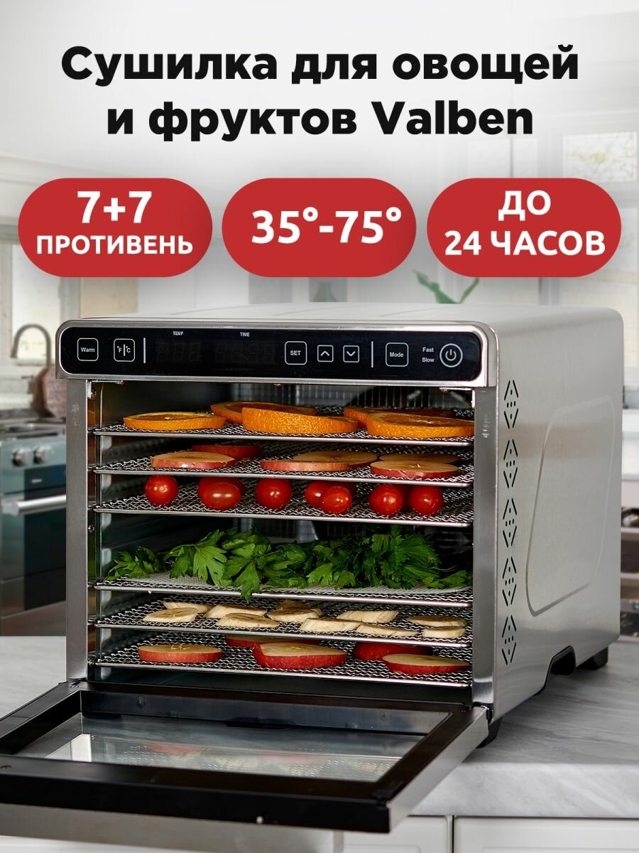 Сушилка электрическая для овощей и фруктов, дегидратор, Valben, 7 поддонов интересное: