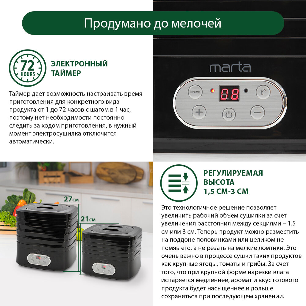 MARTA MT-1944 5 поддонов черный жемчуг сушилка д/фруктов,овощей интересное: