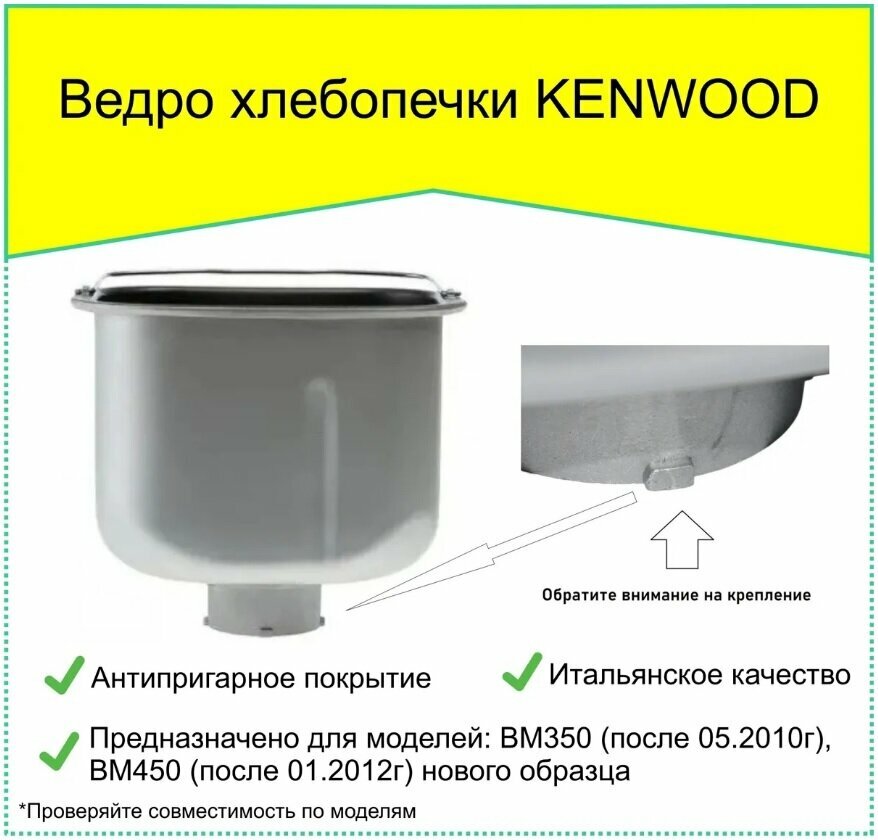 Ведро хлебопечки KENWOOD BM350 (после 05.2010г), BM450 (после 01.2012г) нового образца (KW714130) интересное: