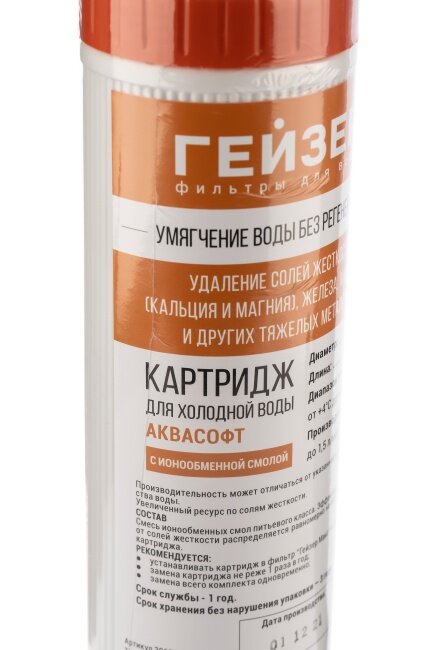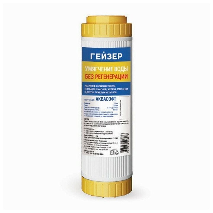 Картридж Гейзер Аквасофт 10SL, удаляют соли жесткости и обеспечивают высокое качество воды, 30636