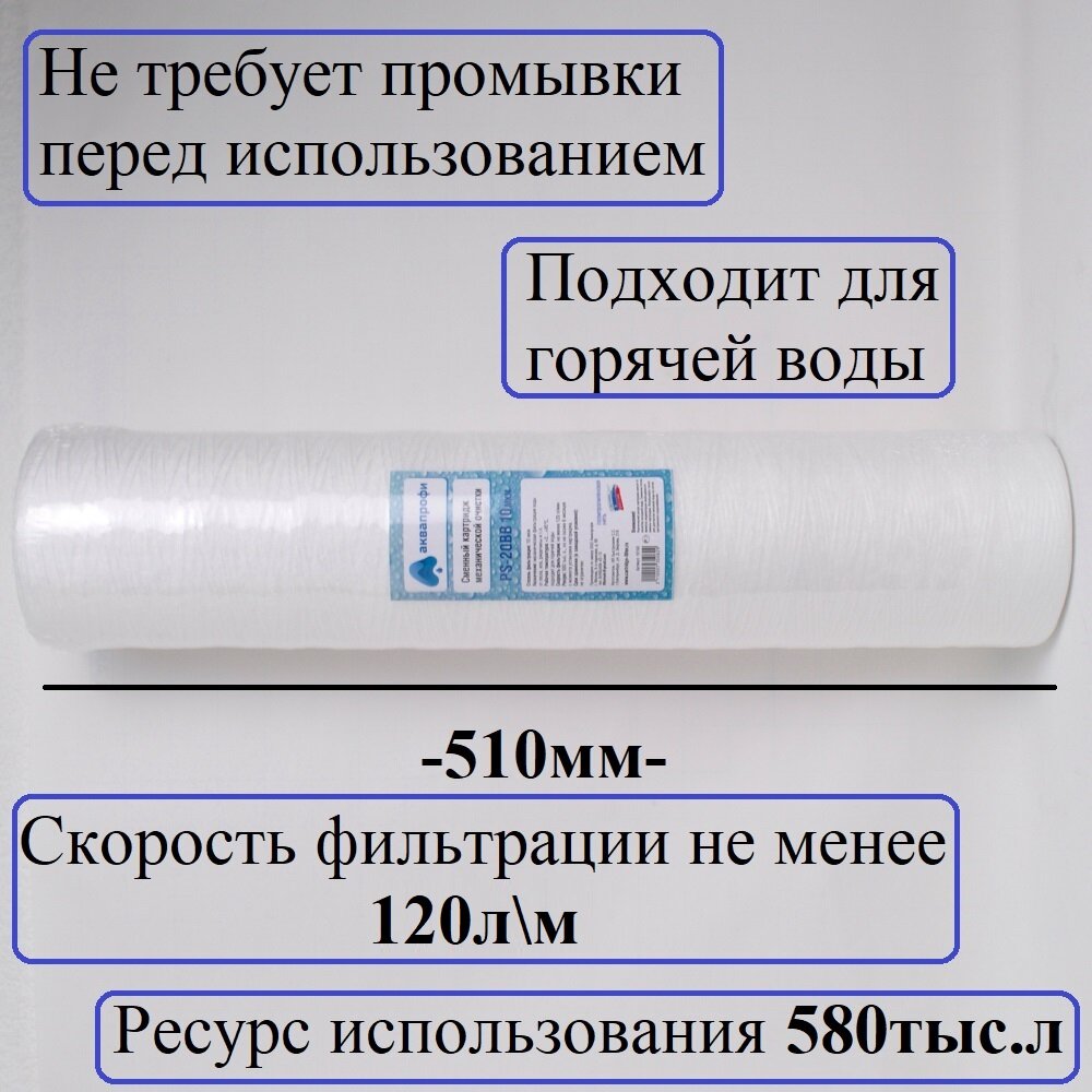 Картридж нитяной РS-20ВВ 10мкм аквапрофи для магистрального фильтра,для корпуса 20ВВ интересное:
