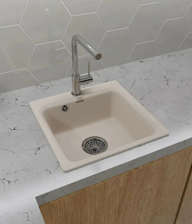 Мойка кухонная каменная GRANFEST SMART квадратная GF-SM430, 430х430 мм, цвет бежевый/Раковина для кухни
