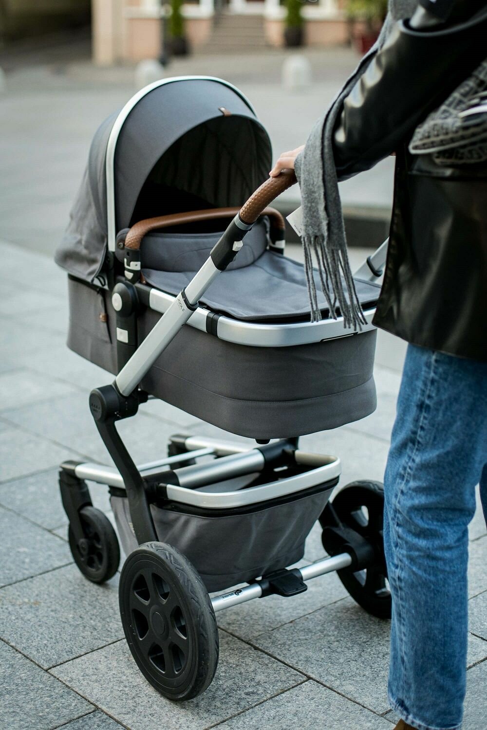 У меня не большая рука, просто будь она чуть больше и чуть мягче , лично мне было бы ещё удобнее) И я бы приподняла коляску , немного, так как у нас в Питере бордюры высокие , часто переезжая из черчу корзиной если она полная |