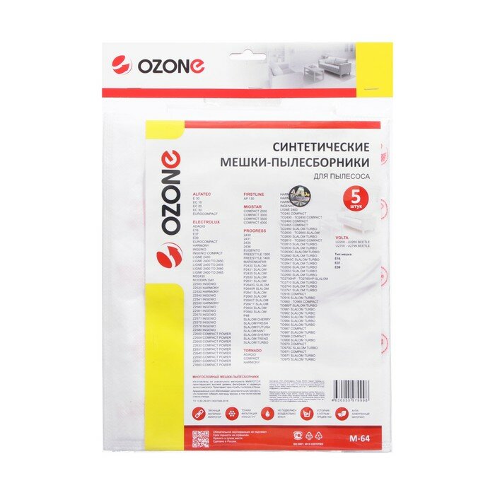 Мешки-пылесборники для пылесоса ELECTROLUX INGENIO Ozone 5 шт. M-64 интересное:
