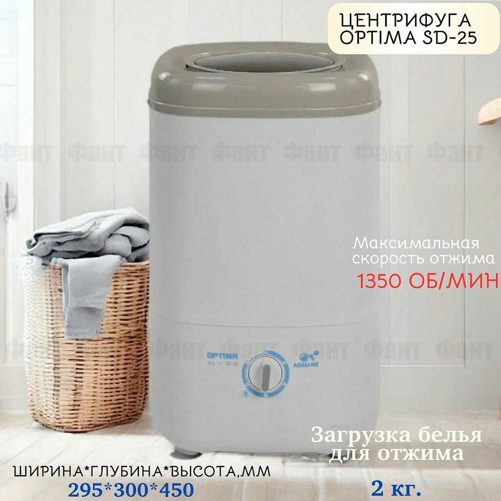 Центрифуга для белья Optima SD-25, вертикальная загрузка, 2 кг, 1350 об/мин.