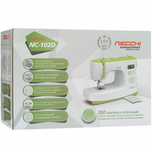 Швейная машина Necchi NC-102D, 200 операций, 8 видов петель, электронное управление, нитевдеватель