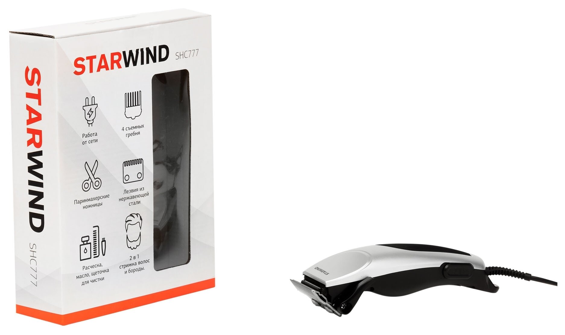 Машинка для стрижки Starwind SHC 777 серебристый/черный 8Вт (насадок в компл:4шт) интересное: