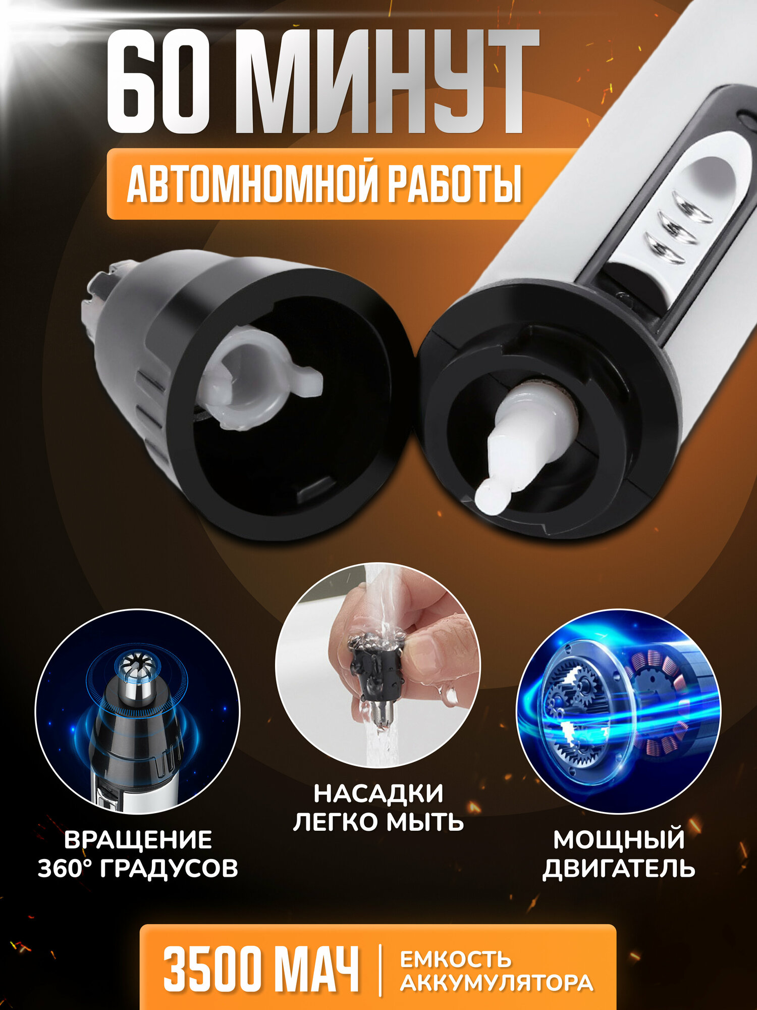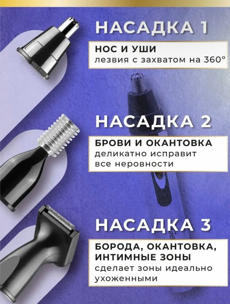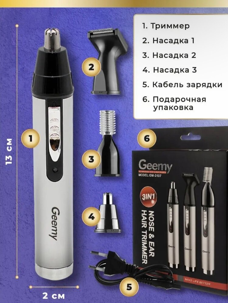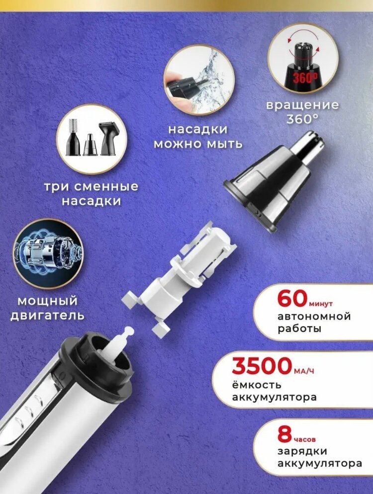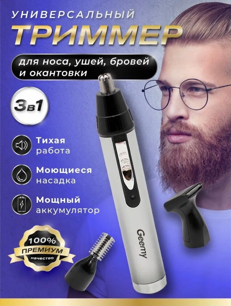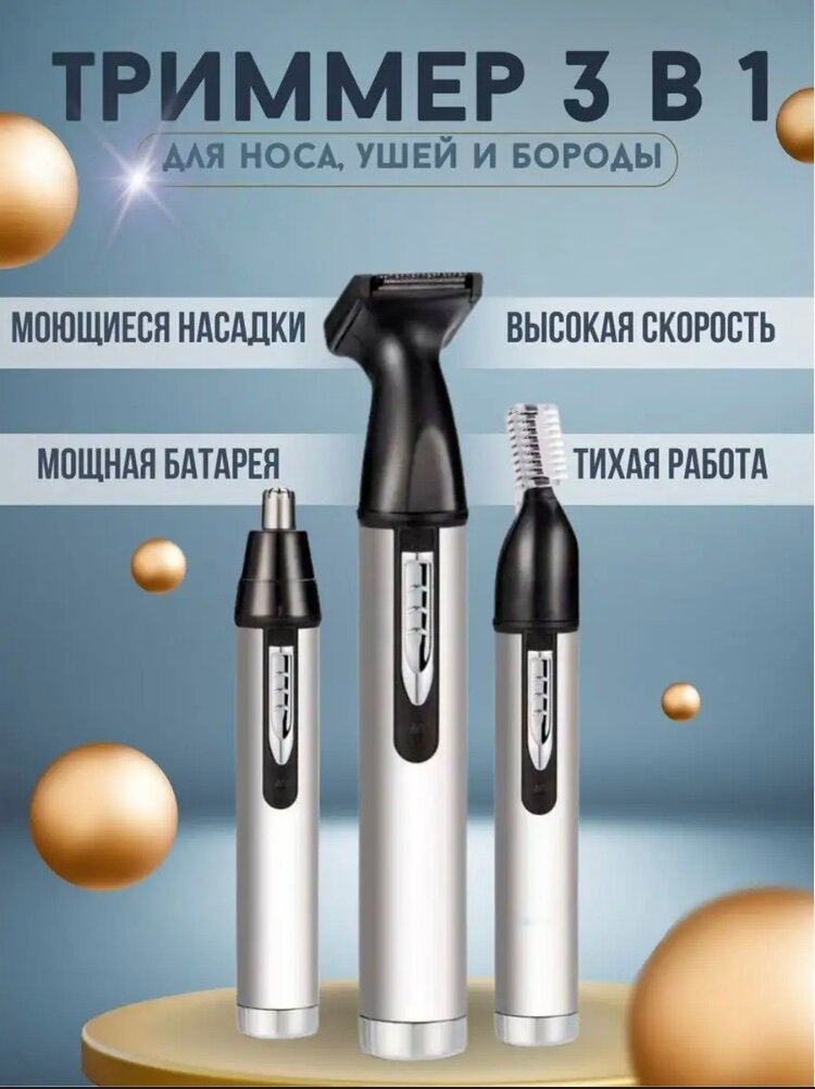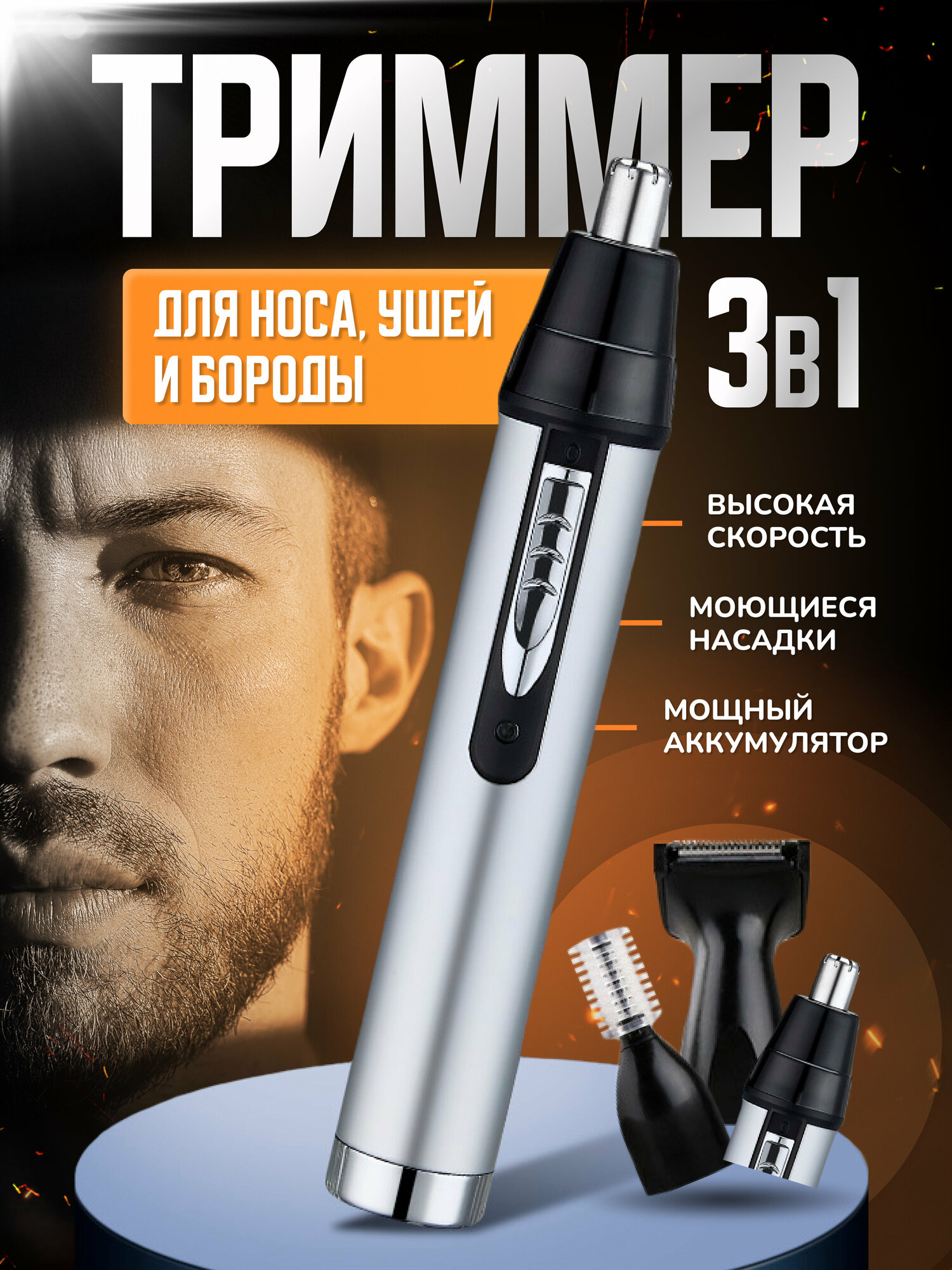 Триммер, триммер для ушей и носа, 3 насадки в комплекте, съемные лезвия для легкой очистки, индикатор зарядки, нержавеющая сталь интересное: