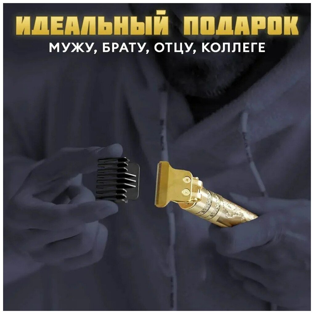 Триммер для волос, бороды и усов/Встроенный аккумулятор/ 3 насадки Professional Barber/ Золото интересное: