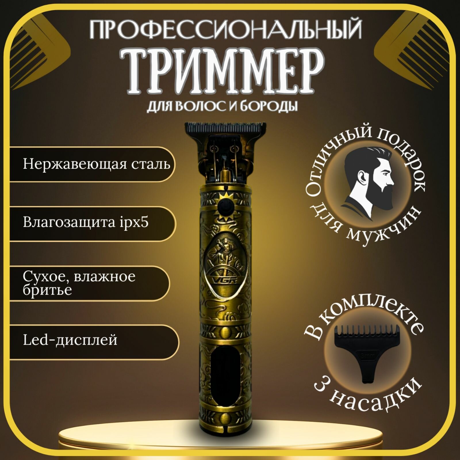 Триммер для бороды и усов и стрижки волос VGR V-228 электрический беспроводной станок с насадками для лица и тела