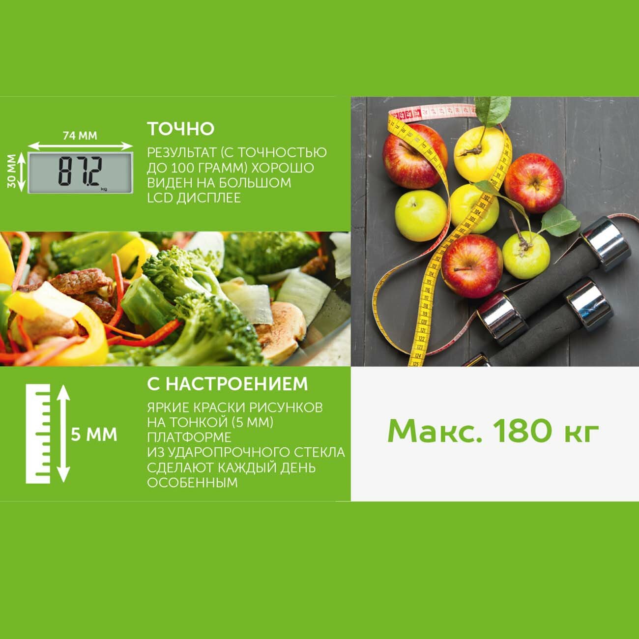 | Отзыв: | Я решила заняться собой: начала тренироваться и села на диету. Купила весы, чтобы оценивать результат. Понравился рисунок на весах, яркий и очень красивый. Работают весы без нареканий, не глючат и не зависают. Самая классная функция - автоматическое включение и выключения, очень удобно. Четкие и удобные весы, которые отлично вписались в интерьер моей ванной. |