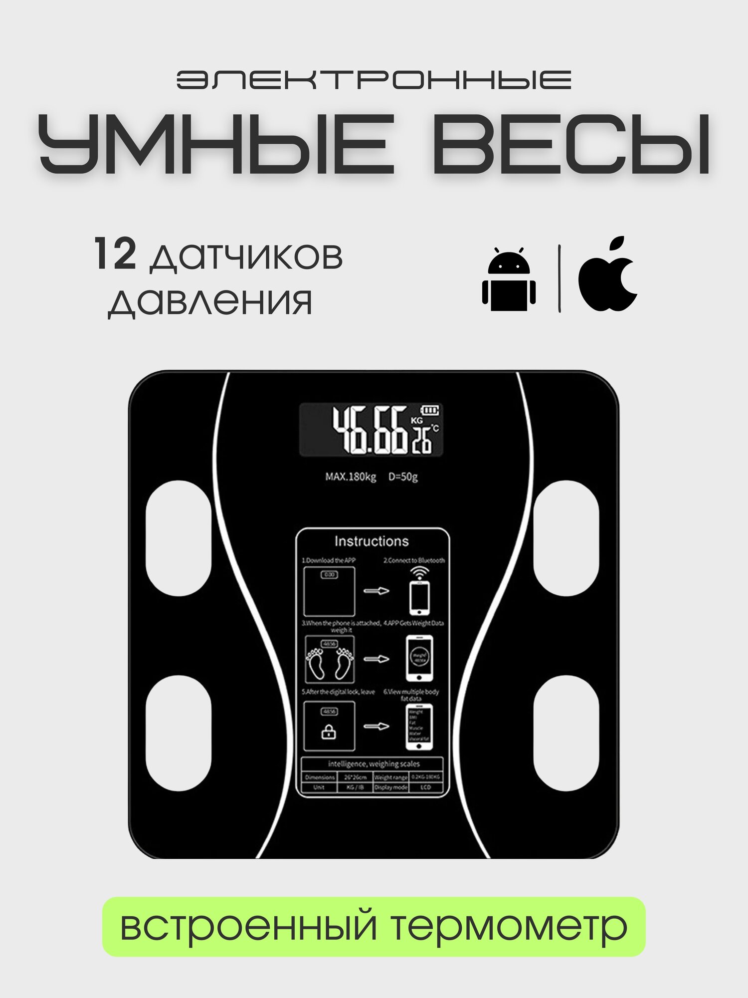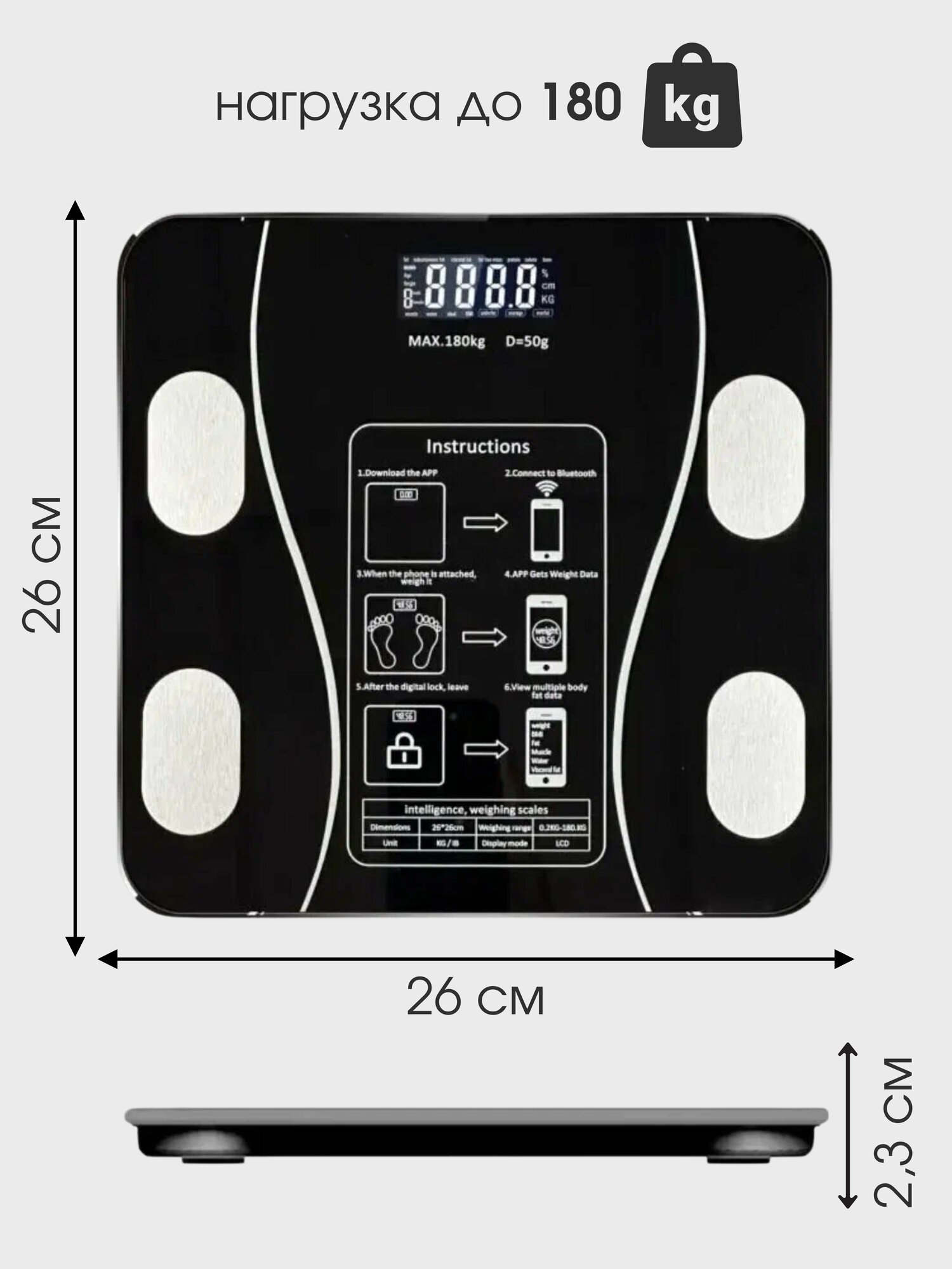 Напольные умные весы c bmi, электронные напольные весы для Xiaomi, iPhone, Android, черные интересное: