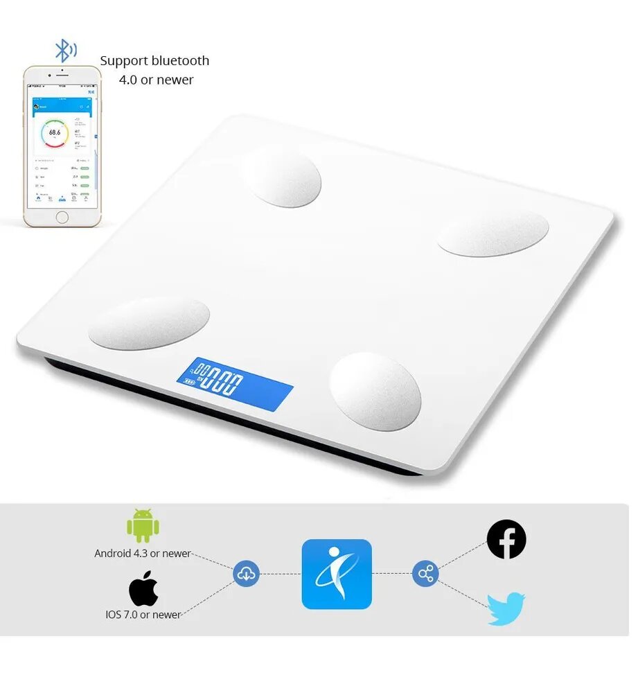 Напольные умные весы c bmi, электронные напольные весы для Xiaomi, iPhone, Android, белые интересное:
