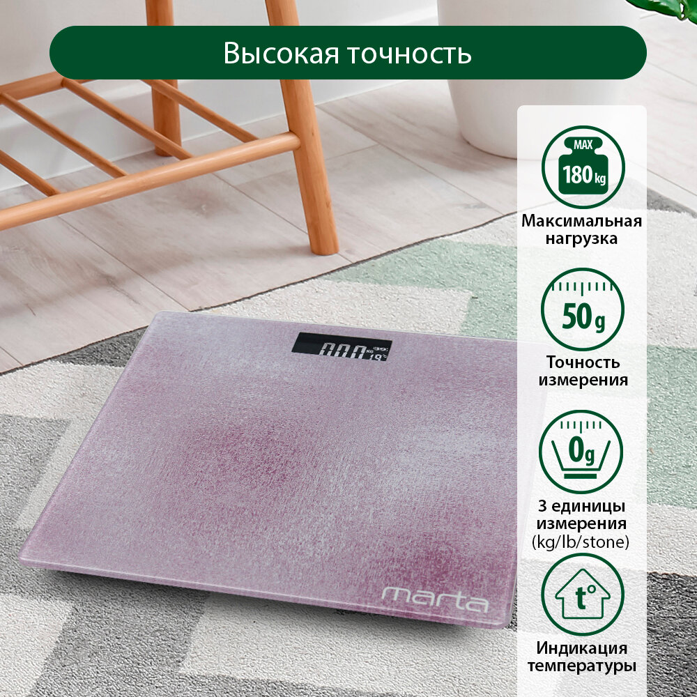 Ниже Вы можете прочитать отзывы на MARTA MT-1679 розовый опал {new} весы напольные сенсор, встроенный термометр, ознакомится с подробными характеристиками, посмотреть интересные обзоры и фотографии на MARTA MT-1679 розовый опал {new} весы напольные сенсор, встроенный термометр.