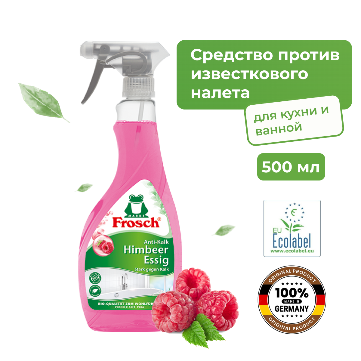 Средство для удаления известкового налета 500 мл FROSCH "Малина" (Германия), ЭКО, распылитель