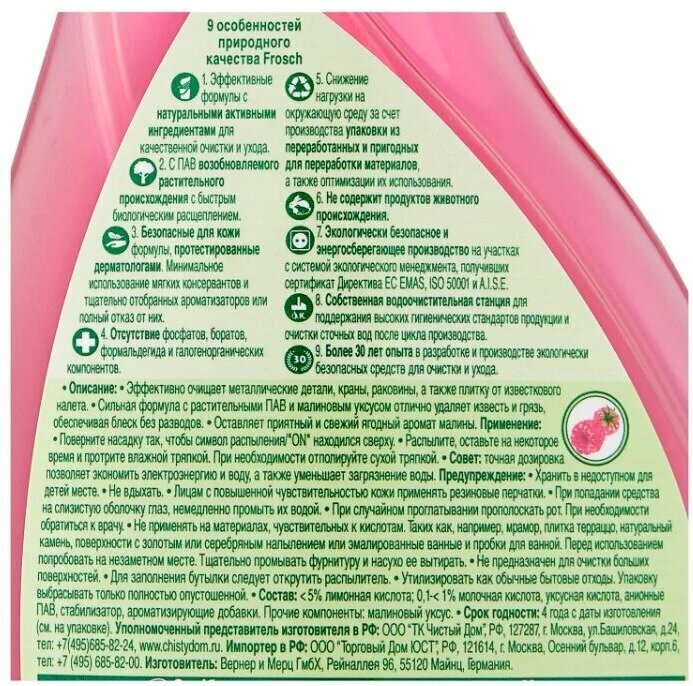 Frosch Средство для удаления известкового налета (Малина), 0,5 л.