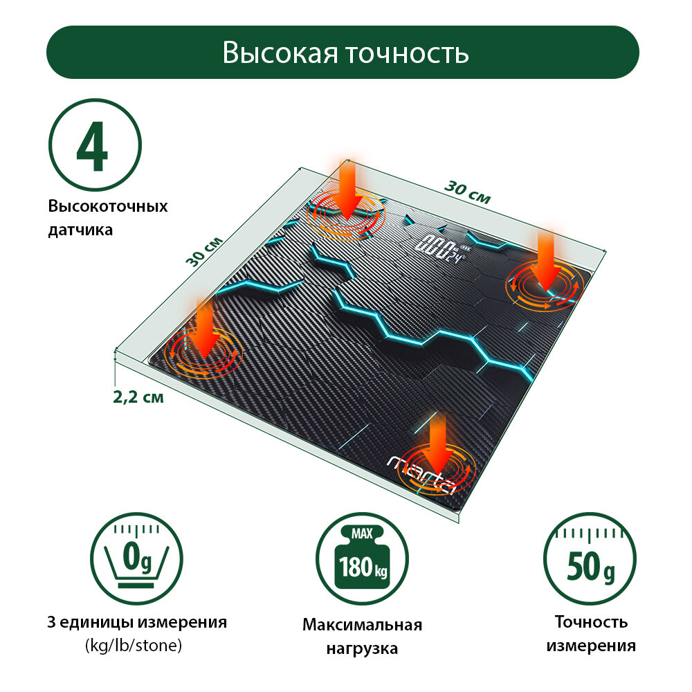 MARTA MT-SC3605 карбон весы напольные диагностические умные, LED дисплей, Bluetooth