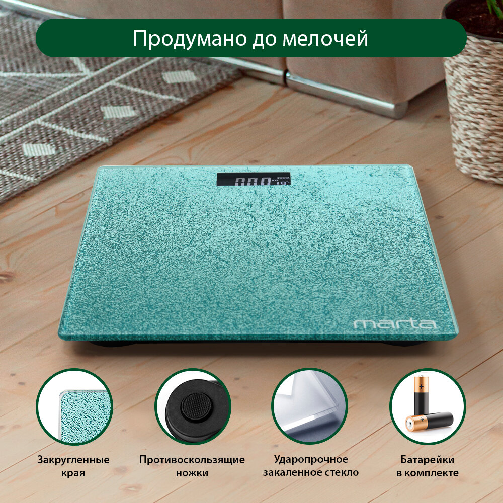 Купить MARTA MT-1679 голубой аквамарин {new} весы напольные сенсор, встроенный термометр