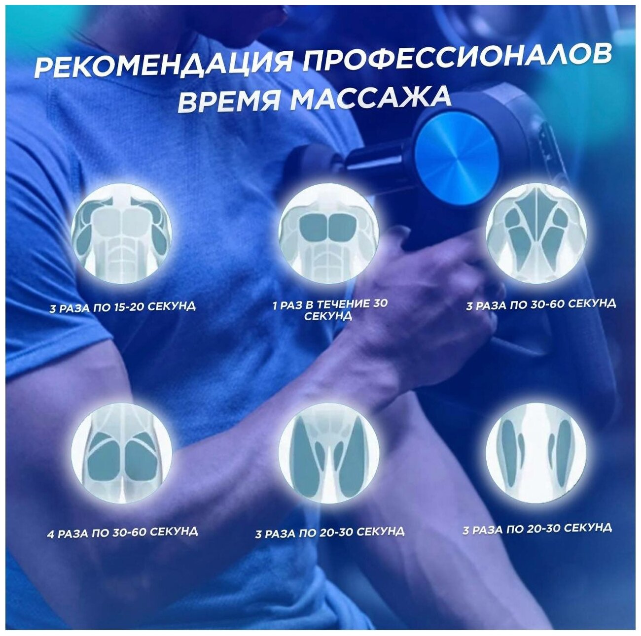 Перкуссионный массажер c 12 насадками в 2 руки. Мощный массажный пистолет для тела, ног, шеи и плеч. Massage gun интересное: