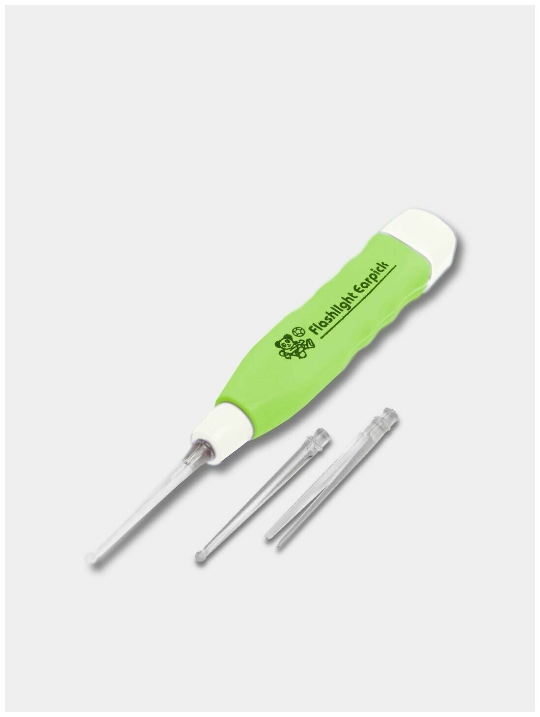 Купить Прибор - палочка для чистки ушей с подсветкой, 3 насадки, батарейки в комплекте, Зеленый/Белый