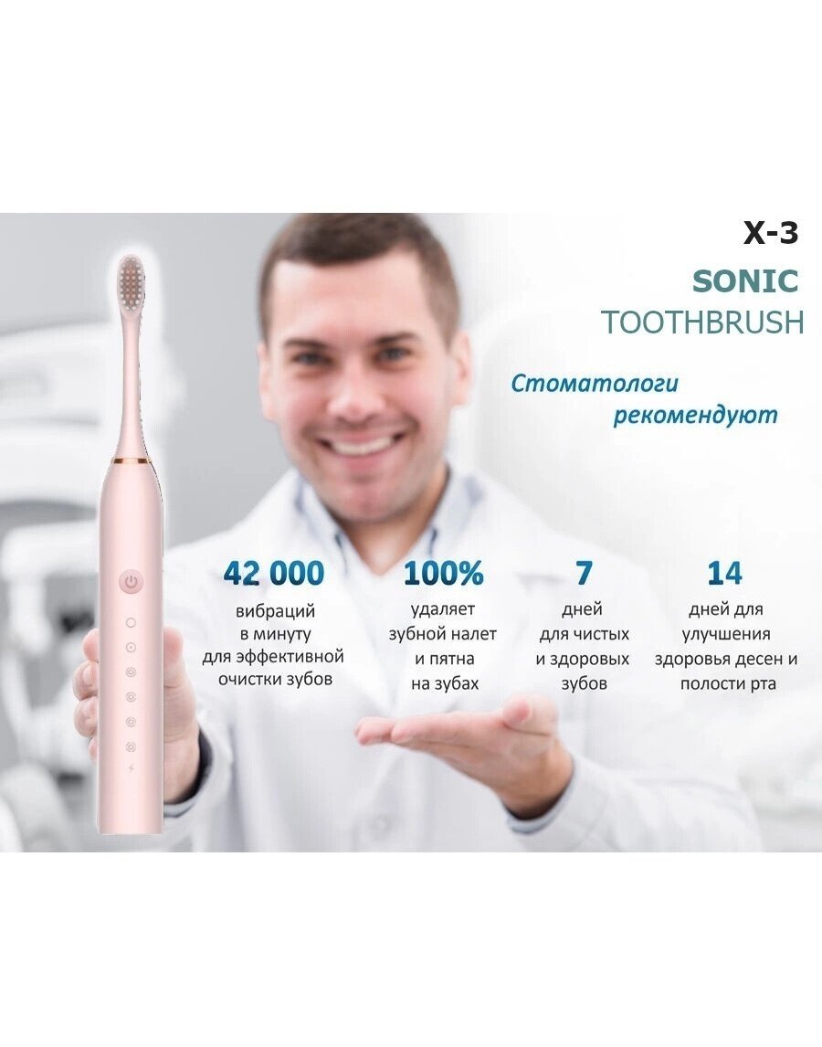 Звуковая зубная щетка Sonic Toothbrush Smarter X-3, розовая интересное:
