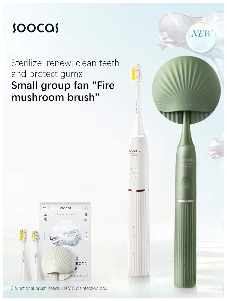 Электрическая зубная щетка SOOCAS Electric Toothbrush (D2) (Футляр c функцией UVC стерилизации + 2 насадки), зеленая интересное: