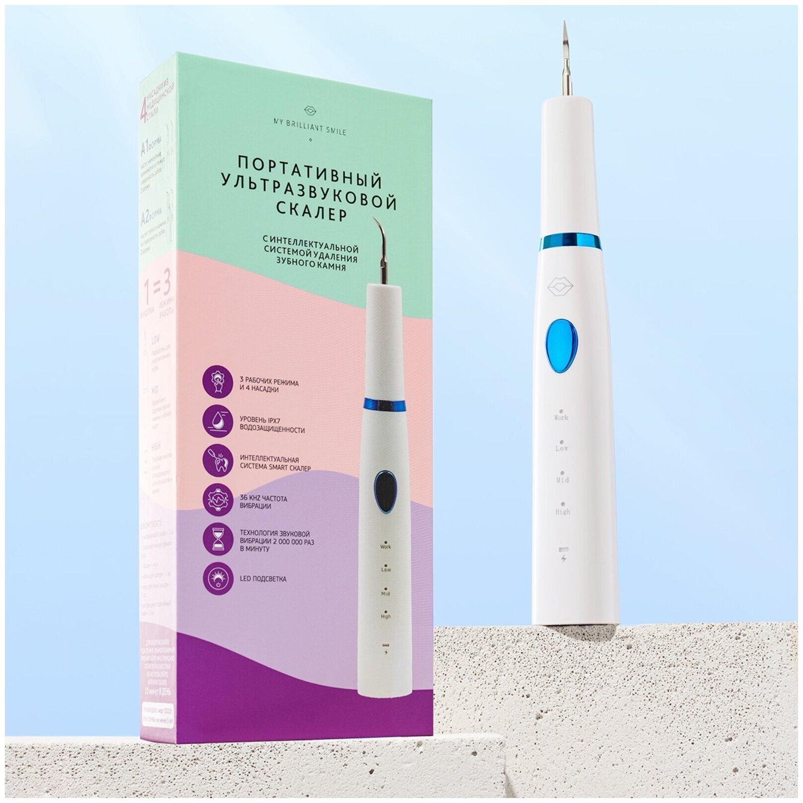 Ультразвуковой скалер для удаления зубного камня My Brilliant Smile 4 насадки интересное: