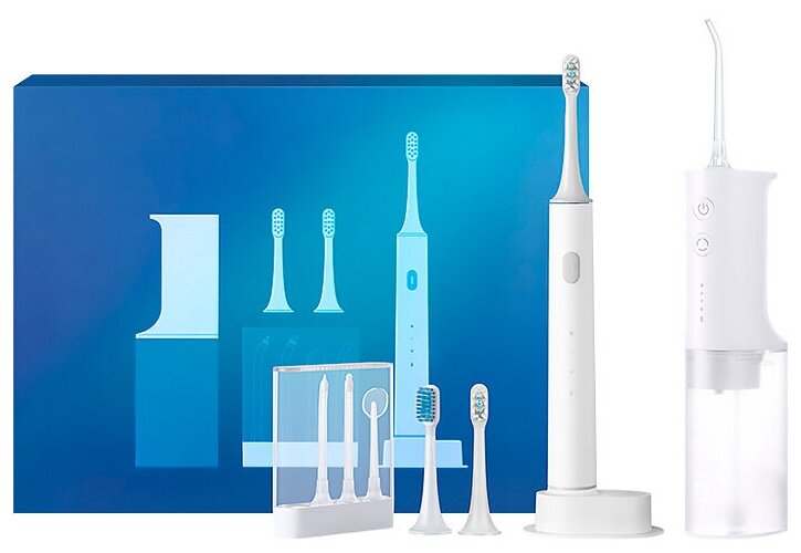 Купить Подарочный набор для чистки зубов и полости рта Xiaomi Mijia (электрическая зубная щетка + 3 насадки, зарядная база, ирригатор + 4 насадки)