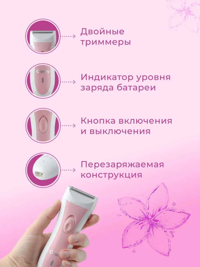 • Эпилятор женский GM-3073 / Электробритва женская/ Для ног, подмышек, линии бикини/ Аккумулятор/3 Вт/ Цвет: Бело-Розовый интересное: